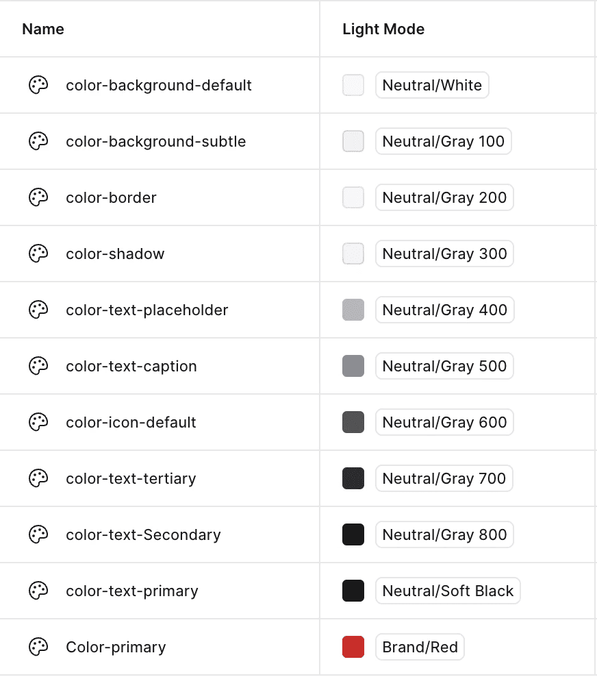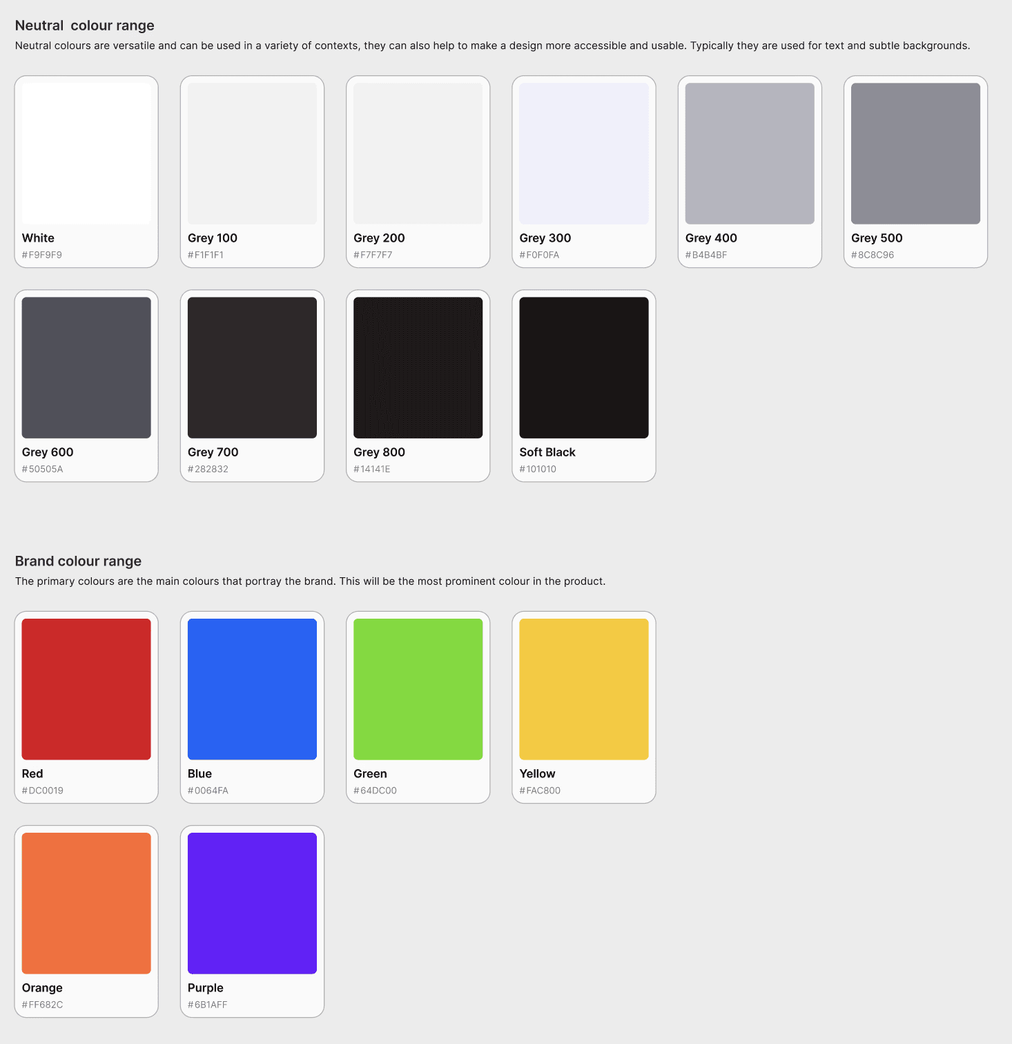 Referencing primitives token, I gave each colour an identity, and a unique meaning, ensuring: